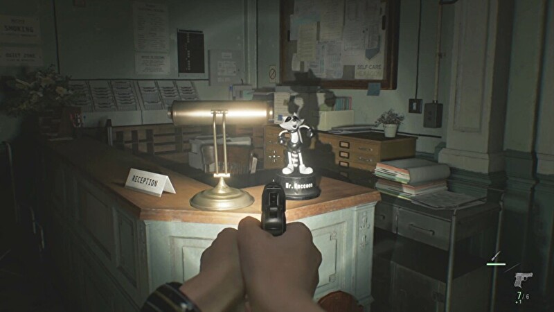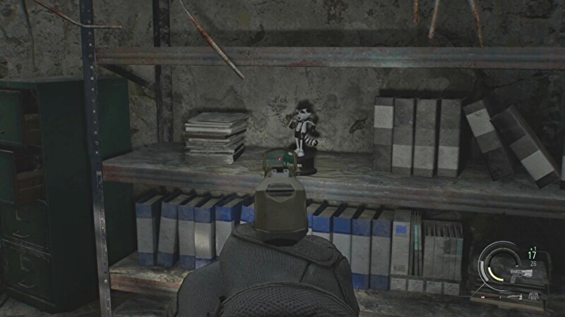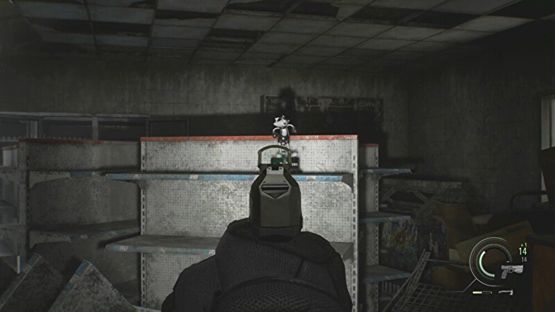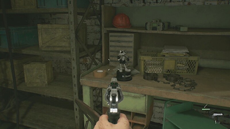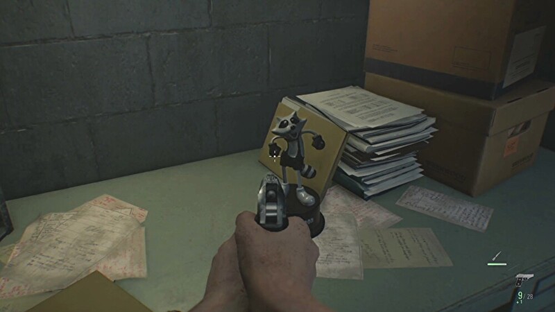 人形シリーズはバイオハザードお馴染みのやり込み要素で今回はラクーン君メモリアルとして登場します。ラクーン君は様々な場所に置かれており、武器で攻撃すると破壊できます。