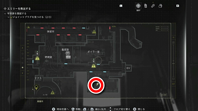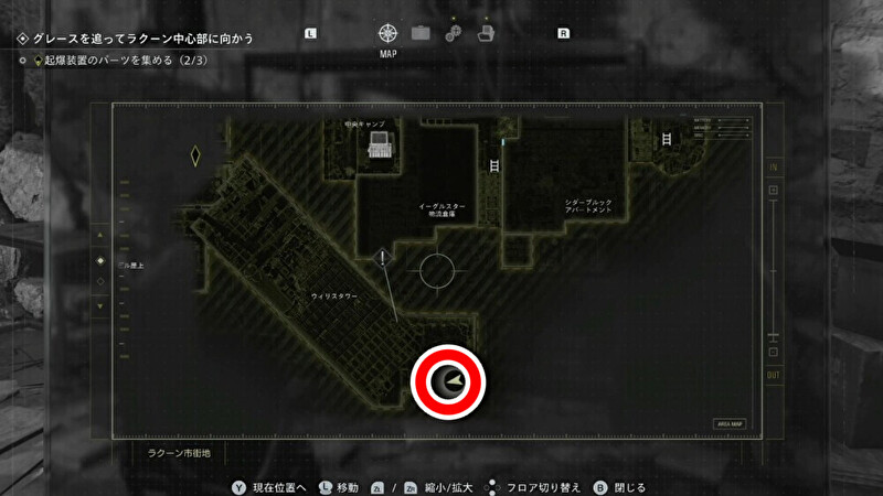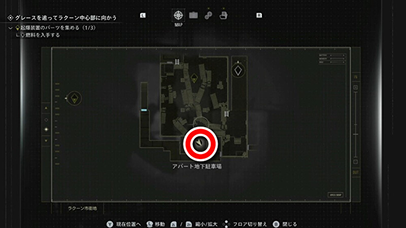 ラクーン君の場所は懸吊室の金庫や、スペシャルコンテンツで手に入る追憶の地図があると、ラクーン君の位置がMAPに表示されるようになります。