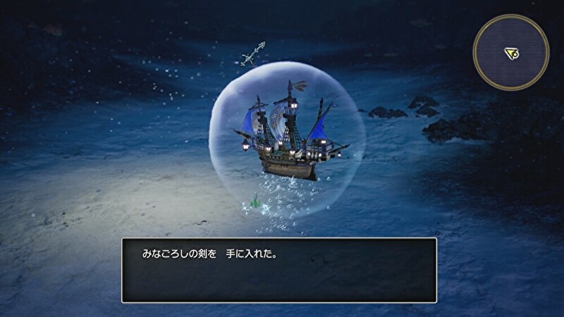 また全体攻撃武器ではみなごろしのけん。威力が落ちない全体攻撃武器として、クリア前から使用可能です。これは人魚の聖域から南東の深海のキラキラで入手することができます。