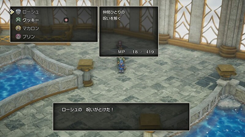 その人物はサマルトリアの王子クッキーで、ベラヌールでファットバットから呪いを受けて寝込んでしまいますが、その後世界樹の葉を飲んで回復しパーティに再加入した際に、呪いを受け付けなくなる体になっています。