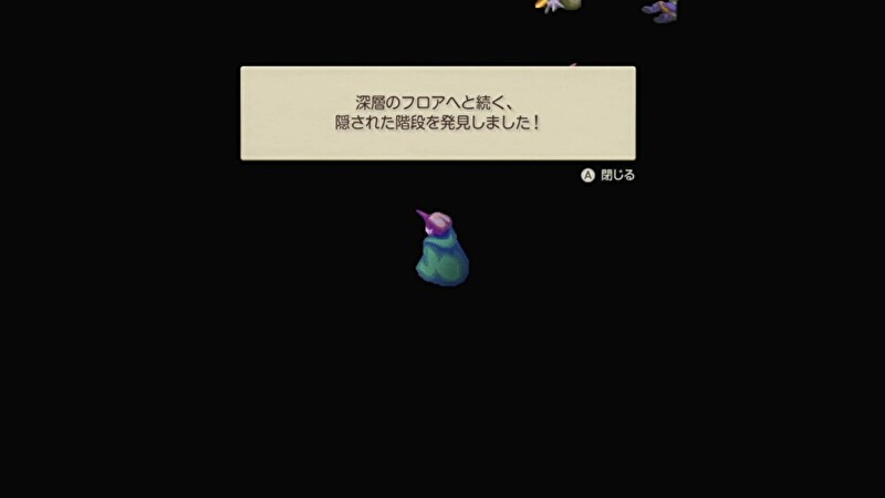 各フロアの敵を殲滅するとクリアとなりますが、次の階層を出現させるには敵を殲滅する前にフロアにある隠し階段を発見する必要があります。