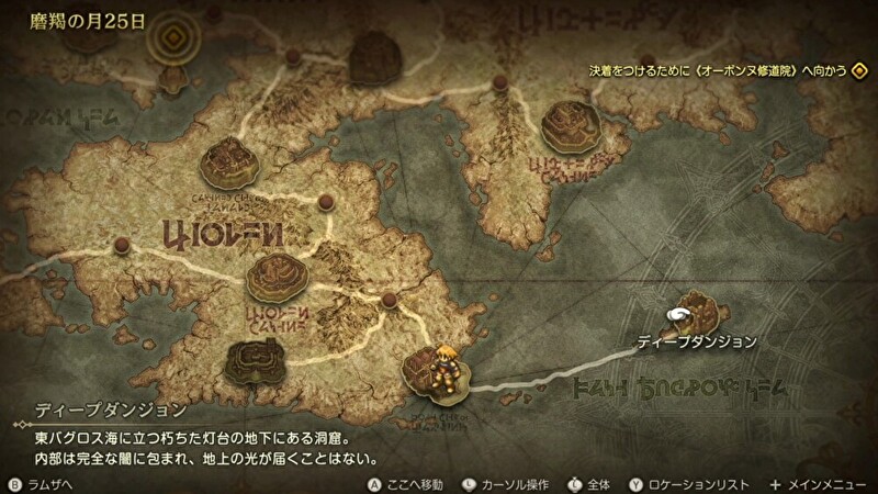 ディープダンジョンはチャプター4の聖地ミュロンドを攻略後に貿易都市ウォージリスに行くと、イベントが発生して行くことができるようになります。