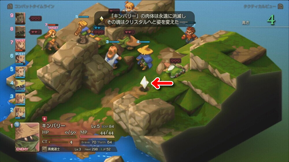 クリスタルになってしまうと戦死者としてカウントされ、パーティにも二度と戻って来ないので注意が必要です。クリスタルになる前に蘇生するか、ハートが0になる前に戦闘を終わらせましょう