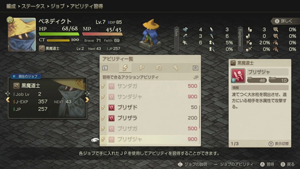 ジョブポイントを貯めてアビリティ習得をすると使用できるアビリティが増えていきます。