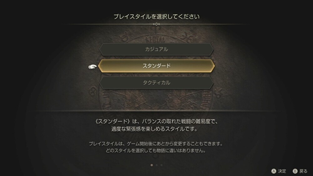 最初は中間のスタンダードになっていて、もっと簡単にしたい場合はカジュアルに、物足らないと感じた場合はタクティカルに変更します。